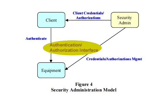 - Equipment -在管理模型中,设备的角色是为设备建立安全管理实体,持有任何已定义的授权,验证客户端建立会话,确定客户端授权级别,并对已建立的会话实施这些级别。