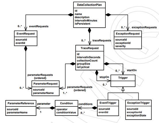 - TraceRequest:此DCP中客户端指定要报告的一组定义跟踪数据的采集频率、起停条件、缓冲策略等。